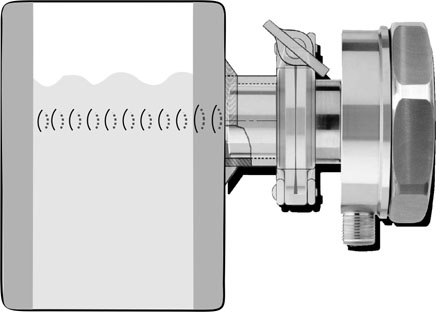 物位開關在反射式工作模式下,當容器內介質粘稠(如:潤滑油脂)產生掛壁,發出的超聲波被掛壁介質吸收,使反射波減弱,嚴重時會沒有反射波。此時,需采用回波式工作模式。回波式接收對面罐壁的反射信號,因而不受物料掛壁的影響。