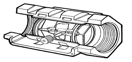 渦輪是用高導磁的不銹鋼制成的,渦輪體上有數片螺旋形葉片(故也稱葉輪流量計),整個渦輪支承在前后兩個摩擦力很小的軸承內。流體流動推動渦輪旋轉(渦輪旋轉速度與流體速度相當),雙金屬溫度計通過測量渦輪轉速而測定流量。