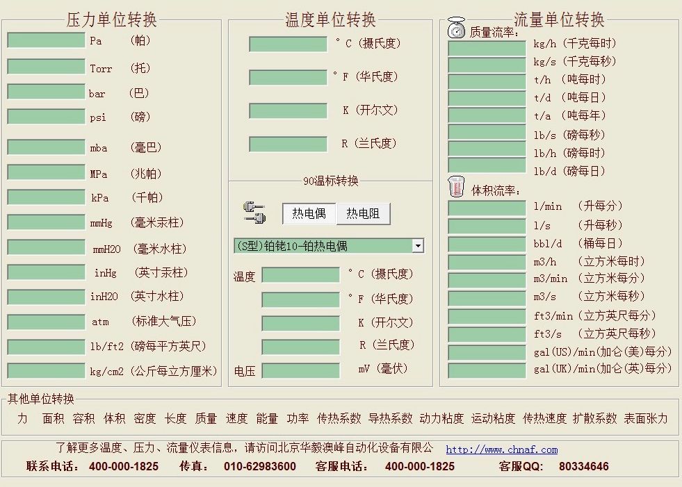 可實現在線巴(bar)、華氏度千帕(kPa)、百帕(hPa)、毫巴(mbar)、帕斯卡、標準大氣壓(atm)、毫米汞柱(mmHg)、磅力平米英尺英寸、毫米水柱、公斤力平方厘米等壓力計量單位間的互轉互換。